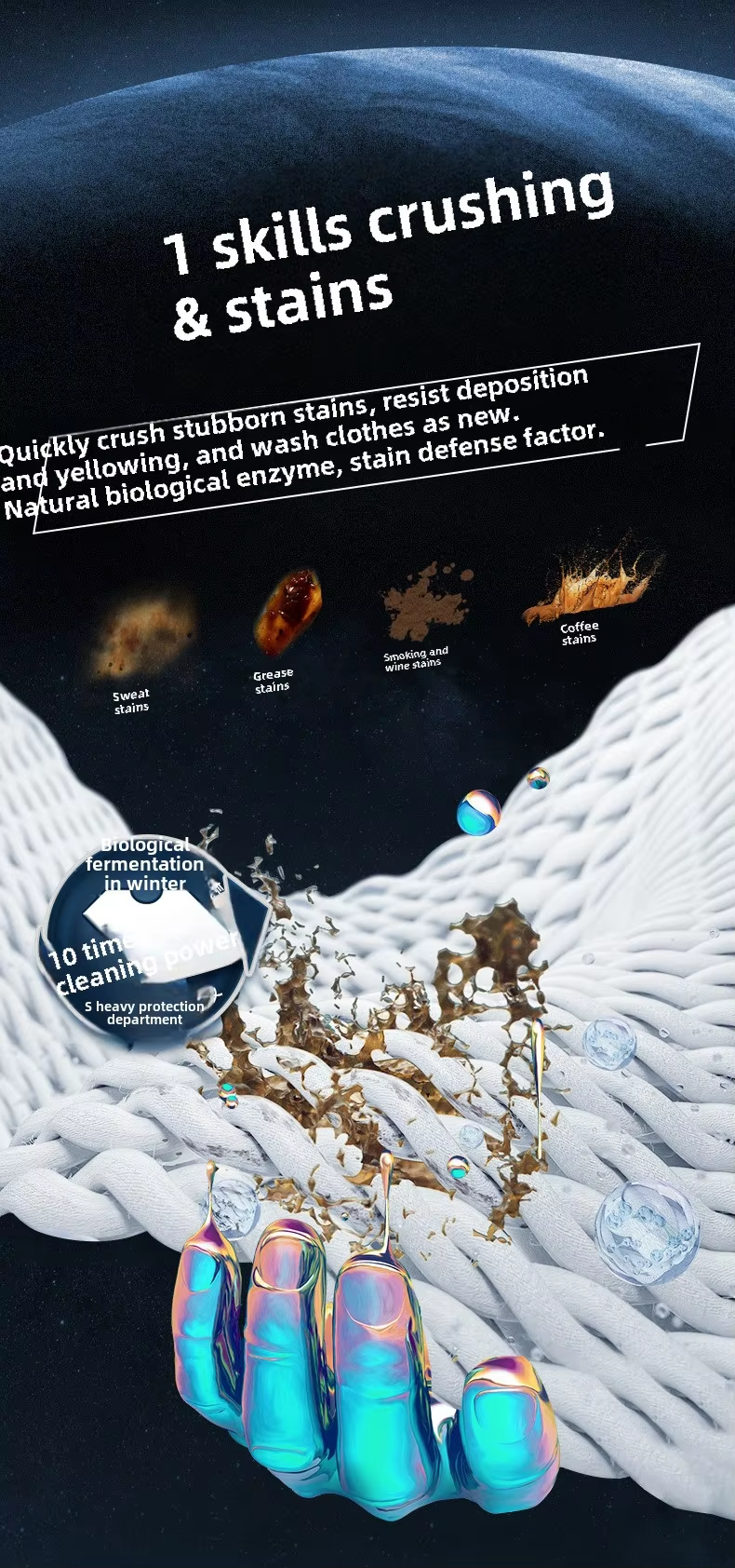 A10: Our stain + odor laundry detergent capsule formulas contain enzymes to fight stubborn stains, Enzymes are molecules that target the removal of one type of molecule, like proteins or starch.